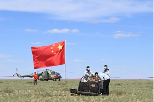 2024年6月25日14時7分,嫦娥六號返回器攜帶來自月背的月球樣品安全著陸在內(nèi)蒙古四子王旗預定區(qū)域,探月工程嫦娥六號任務取得圓滿成功。圖片來源:新華社