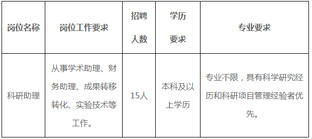 ?。ㄈI(yè)不限,具有科學研究經(jīng)歷和科研項目管理經(jīng)驗者優(yōu)先。