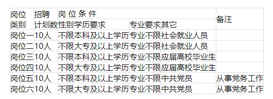全市計(jì)劃招聘專職社區(qū)工作者60名,詳見表格。