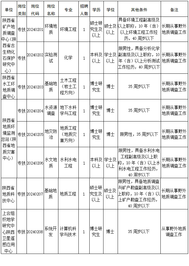 陜西省地質(zhì)調(diào)查院2024年公開招聘高層次專業(yè)技術(shù)人才公告