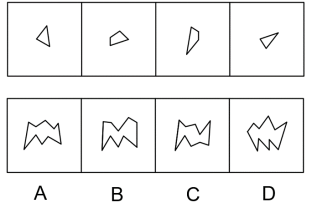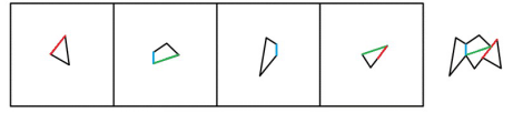 例:下邊四個圖形中,只有一個是由上邊的四個圖形拼合(只能通過上、下、左、右平移)而成的,請把它找出來( )。