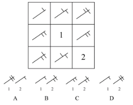 例:從所給四個選項中,選擇最合適的填入1和2處,使之呈現(xiàn)一定的規(guī)律性:( )