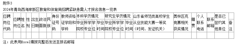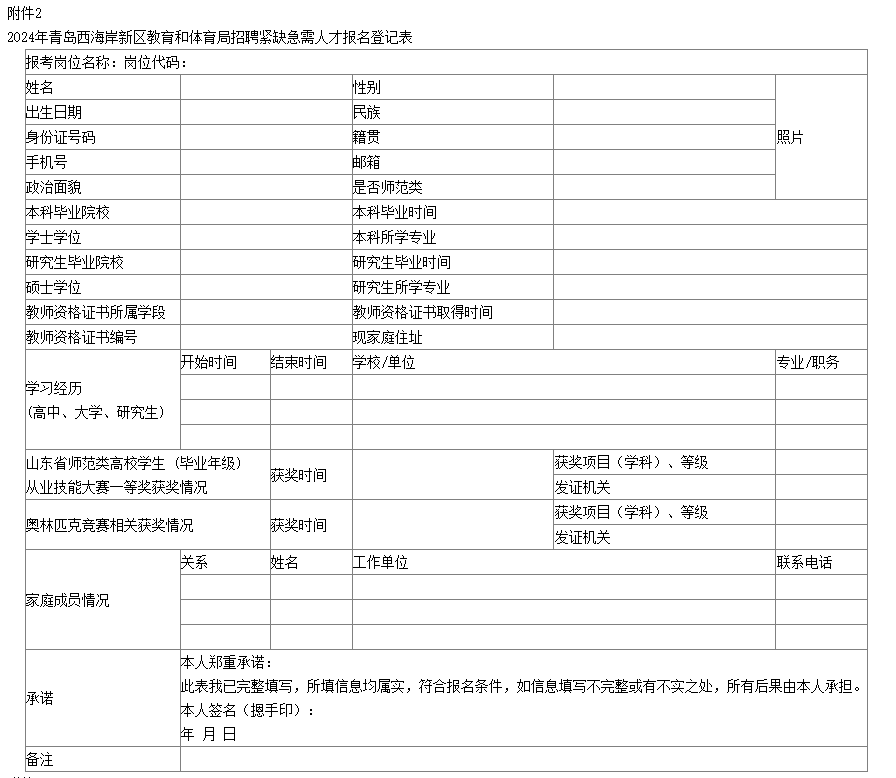 2.2024年青島西海岸新區(qū)教育和體育局招聘緊缺急需人才報(bào)名登記表