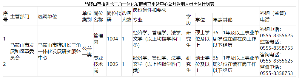 附件:馬鞍山市推進長三角一體化發(fā)展研究服務中心公開選調人員崗位計劃表