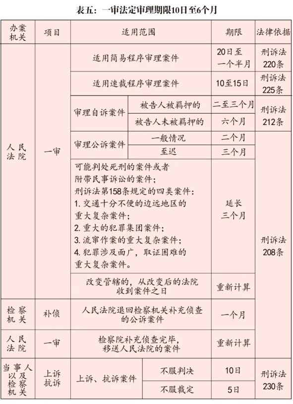 刑事辦案期限一覽表