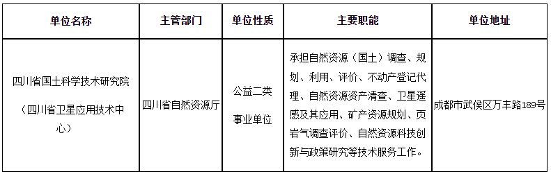1.四川省國土科學(xué)技術(shù)研究院(四川省衛(wèi)星應(yīng)用技術(shù)中心)2024年公開考核招聘工作人員崗位和條件要求一覽表