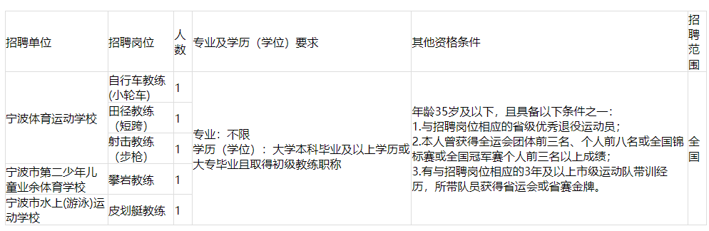 寧波市體育局直屬事業(yè)單位公開招聘教練員公告