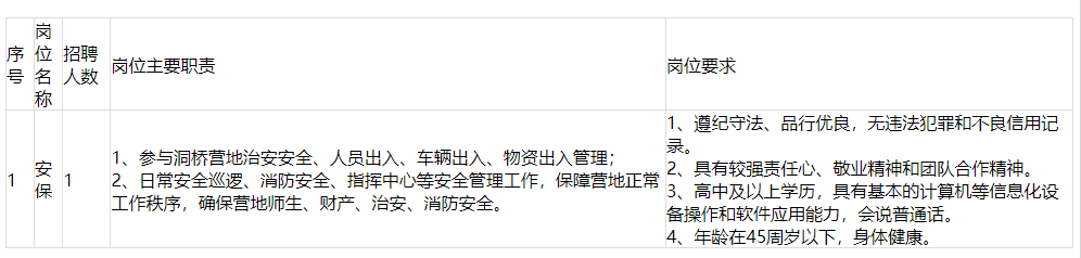 現(xiàn)因事業(yè)發(fā)展需要,面向社會公開招聘保安人員1名。