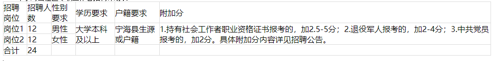 2024年寧??h社區(qū)專職工作者招聘計劃表