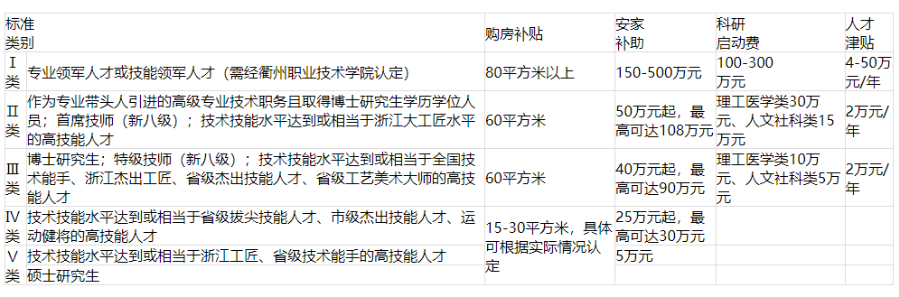 2.招聘對(duì)象按規(guī)定符合衢州市和衢州職業(yè)技術(shù)學(xué)院高層次緊缺人才引進(jìn)相關(guān)待遇(購房補(bǔ)貼、安家補(bǔ)助、科研啟動(dòng)費(fèi)、人才津貼等)的,學(xué)校根據(jù)人才類別按規(guī)定幫助其申請(qǐng)市購房補(bǔ)貼、人才津貼,并發(fā)放學(xué)校安家補(bǔ)助等,具體標(biāo)準(zhǔn)如下: