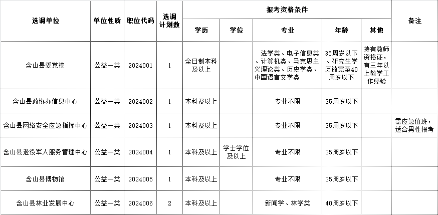 附件1:2024年含山縣部分事業(yè)單位公開選調(diào)工作人員崗位表