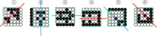 【點(diǎn)撥】以上題目考查的是對(duì)稱軸兩側(cè)的圖案特征,即是否存在獨(dú)立的小元素。