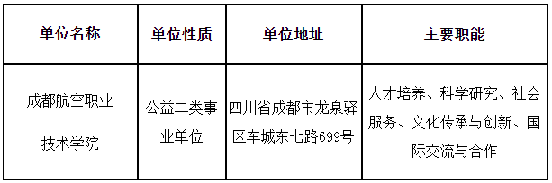 考試、體檢、考察合格者由成都航空職業(yè)技術(shù)學(xué)院確定為擬聘用人員,并在省人社廳官網(wǎng)“人事考試”專(zhuān)欄、省教育廳官網(wǎng)及成都航空職業(yè)技術(shù)學(xué)院官網(wǎng)上公示7個(gè)工作日。