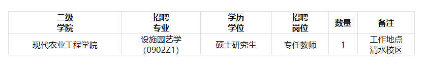 甘肅林業(yè)職業(yè)技術(shù)大學(xué)現(xiàn)代農(nóng)業(yè)工程學(xué)院2025年招聘碩士學(xué)歷學(xué)位專業(yè)教師公告