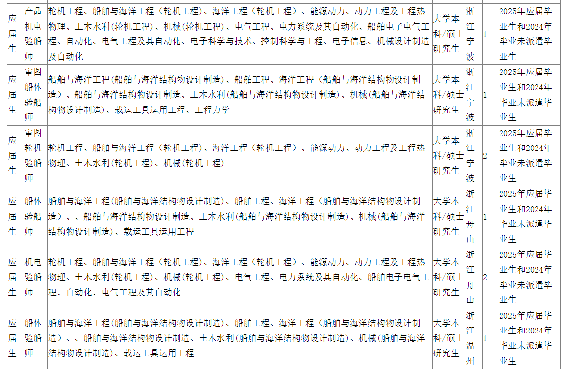 中國(guó)船級(jí)社浙江分社2025年度人才招聘公告