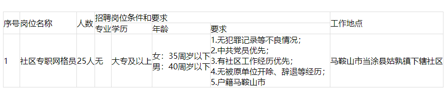 當(dāng)涂縣姑孰鎮(zhèn)人民政府招聘社區(qū)專職網(wǎng)格員的公告