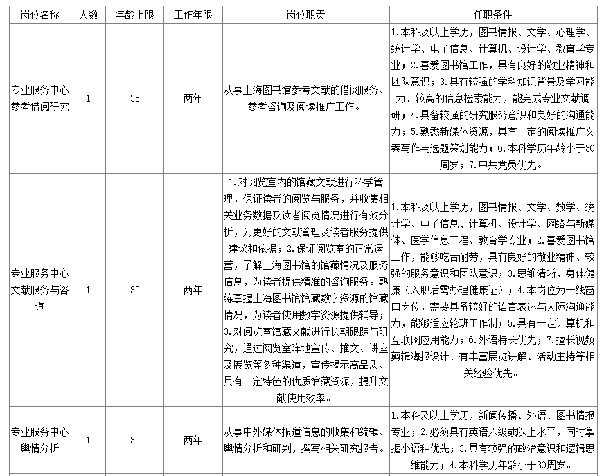 上海圖書館(上??茖W(xué)技術(shù)情報研究所)公開招聘工作人員公告