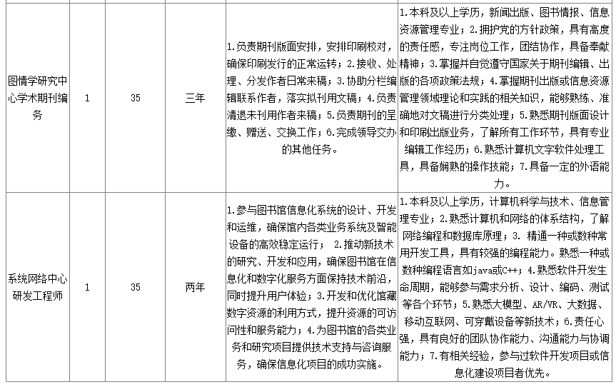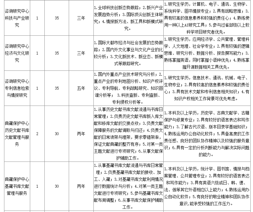 上海圖書館(上??茖W(xué)技術(shù)情報研究所)專技崗位14人。