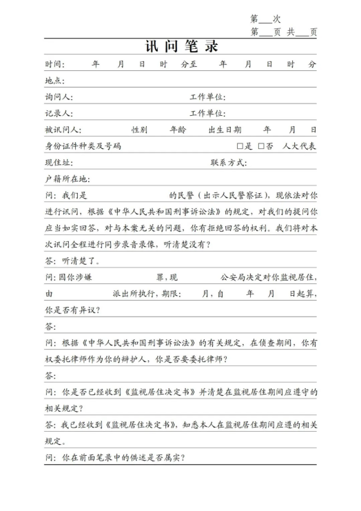 【實(shí)質(zhì)訊問】監(jiān)視居住期間不應(yīng)中斷對(duì)案件的偵查,實(shí)務(wù)中,常見監(jiān)視居住傳訊筆錄流于形式,未針對(duì)被監(jiān)視居住人有無違反監(jiān)居規(guī)定、罪行輕重、從重從寬等開展實(shí)質(zhì)性訊問,應(yīng)注意自行糾正。