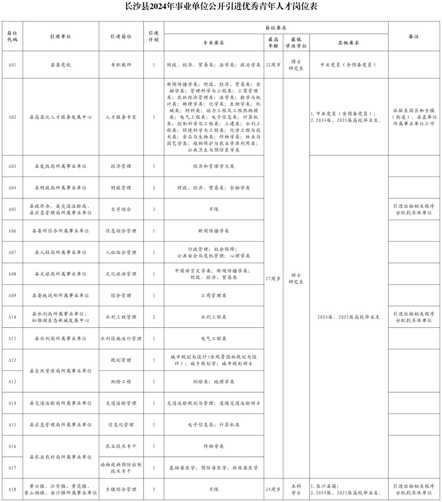 長沙縣2024年事業(yè)單位公開引進(jìn)優(yōu)秀青年人才公告