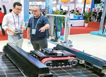 黨的十八大以來(lái),我國(guó)以年均3.3%的能源消費(fèi)增速支撐了年均6.1%的經(jīng)濟(jì)增長(zhǎng),能耗強(qiáng)度累計(jì)下降26.1%,是全球能耗強(qiáng)度降低最快的國(guó)家之一。圖為2024年10月15日,采購(gòu)商在第136屆廣交會(huì)展館了解一款太陽(yáng)能面板自動(dòng)清潔機(jī)器人產(chǎn)品。新華社記者劉大偉/攝