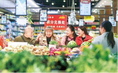 近年來,各地民政部門推動(dòng)社會救助向?qū)I(yè)化、個(gè)性化、發(fā)展型救助轉(zhuǎn)型,努力構(gòu)建“物質(zhì)+服務(wù)”新型救助格局。湖北省荊門市掇刀區(qū)民政部門積極引導(dǎo)民政救助對象參與志愿服務(wù)活動(dòng)、主動(dòng)融入社區(qū)生活,民政救助對象可以通過參與普法宣傳、幫老助殘、環(huán)境保護(hù)等社會志愿服務(wù)活動(dòng)獲取“積分券”,并憑“積分券”到“連心超市”兌換等價(jià)物資。圖為2024年11月5日,參與志愿服務(wù)的民政救助對象憑“積分券”在“連心超市”兌換等價(jià)物資。人民圖片 趙平/攝