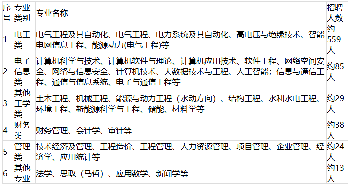 具體用人單位包括:福州、廈門等地市供電公司;閩侯、長(zhǎng)樂(lè)、晉江等縣供電公司;經(jīng)研院、電科院、水口集團(tuán)公司、送變電公司等直屬單位。