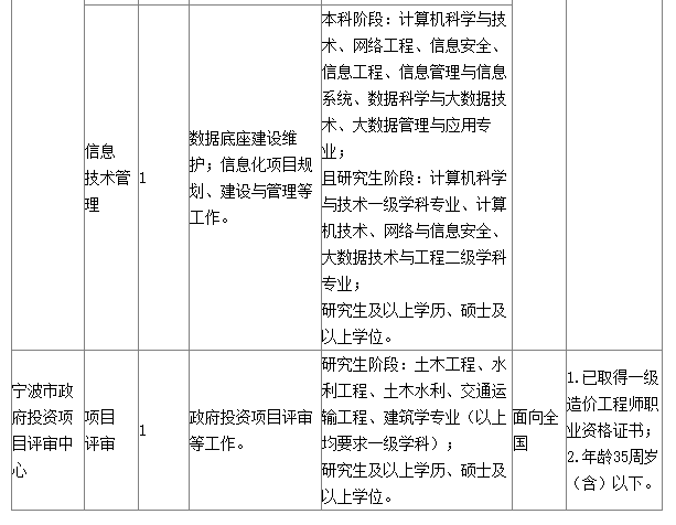 根據(jù)《寧波市事業(yè)單位公開招聘工作人員實(shí)施辦法》的有關(guān)規(guī)定,經(jīng)市發(fā)改委同意,市發(fā)改委委屬事業(yè)單位寧波市經(jīng)濟(jì)信息研究中心(寧波市信用中心)、寧波市政府投資項(xiàng)目評(píng)審中心決定面向社會(huì)公開招聘事業(yè)編制工作人員10名?,F(xiàn)就有關(guān)事項(xiàng)公告如下: