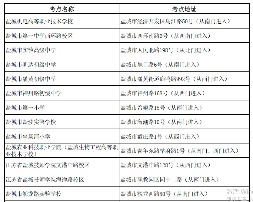 鹽城考區(qū)設(shè)了18個(gè)考點(diǎn),有關(guān)考點(diǎn)方位、公交線路等詳情,可登錄報(bào)名網(wǎng)站下載查閱??忌鷳?yīng)仔細(xì)查看準(zhǔn)考證上標(biāo)注的考點(diǎn)名稱、地址、考場(chǎng)號(hào)、座位號(hào),以及考點(diǎn)入口等信息。