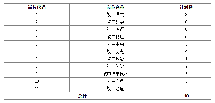 備注:區(qū)教育局根據(jù)招聘實(shí)際情況,可進(jìn)行崗位間計(jì)劃調(diào)劑。