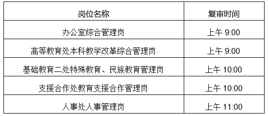 資格復(fù)審形式為現(xiàn)場(chǎng)審查。資格復(fù)審不合格者,取消面試資格,依次遞補(bǔ)符合條件者參加面試。資格復(fù)審時(shí)間為1月14日(周二)上午,地點(diǎn)為北京市教育委員會(huì)(北京市通州區(qū)達(dá)濟(jì)街6號(hào)院4號(hào)樓北門集合)。各崗位具體時(shí)間見安排表,請(qǐng)?zhí)崆笆昼姷竭_(dá)集合地點(diǎn)。
