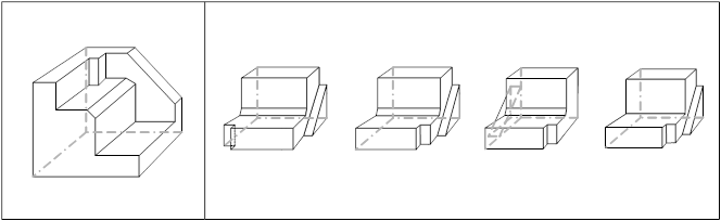 正方體切掉一塊后剩余部分如下圖左側(cè)所示,右側(cè)哪一項是其切去部分的形狀?
