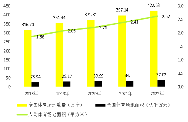 2.2022年全國人均體育場地面積同比增量約為2018~2022年年均增長量的: