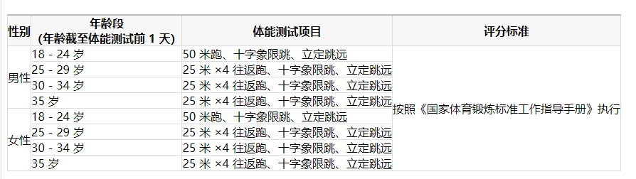 (二)體能測(cè)試當(dāng)天,考生應(yīng)適度飲食、合理著裝,在工作人員引導(dǎo)下進(jìn)行測(cè)試。
