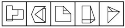 如上圖,元素組成相同,考慮位置規(guī)律。觀察發(fā)現(xiàn),第一幅圖進行左右翻轉(zhuǎn)后得到第二幅圖,第二幅圖進行上下翻轉(zhuǎn)后得到第三幅圖。