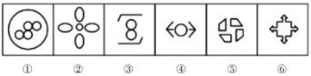 如上圖,圖形被分割成多個封閉區(qū)域,考慮面數(shù)量,面數(shù)量無法分成兩組,進一步觀察發(fā)現(xiàn),圖①④⑥中存在明顯的最小面,且最小面的形狀均與圖形外框的形狀相同,圖②③⑤中存在明顯的最大面,且最大面的形狀均與圖形外框的形狀相同。