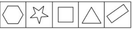 如上圖,組成元素重復出現(xiàn),考慮遍歷。觀察發(fā)現(xiàn),第一組圖形中圓形、三角形、五角星重復出現(xiàn)。第二組圖形中四邊形、三角形、圓形重復出現(xiàn)。