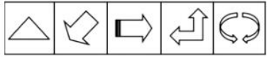 如上圖,圖形均為軸對稱圖形,考慮對稱軸的方向和數(shù)量。圖形的對稱軸均只有1條,且對稱軸方向按照順時針方向依次旋轉(zhuǎn)45°。