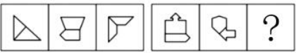 如上圖,元素組成不同,優(yōu)先考慮屬性規(guī)律。觀察發(fā)現(xiàn)第一組圖中分別是全直圖形、全曲圖形和曲+直的圖形。第二組前兩個圖形分別為全直圖形和全曲圖形。