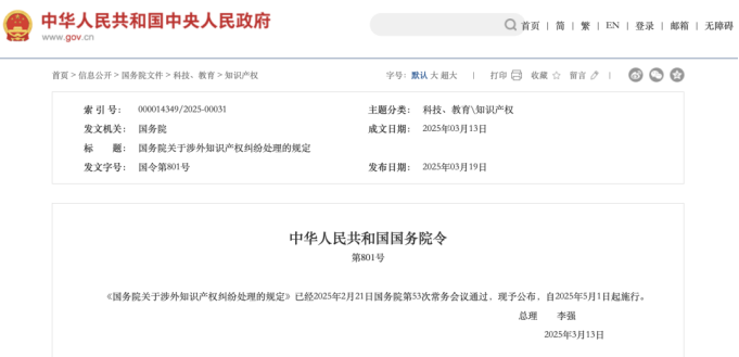 國務(wù)院關(guān)于涉外知識產(chǎn)權(quán)糾紛處理的規(guī)定