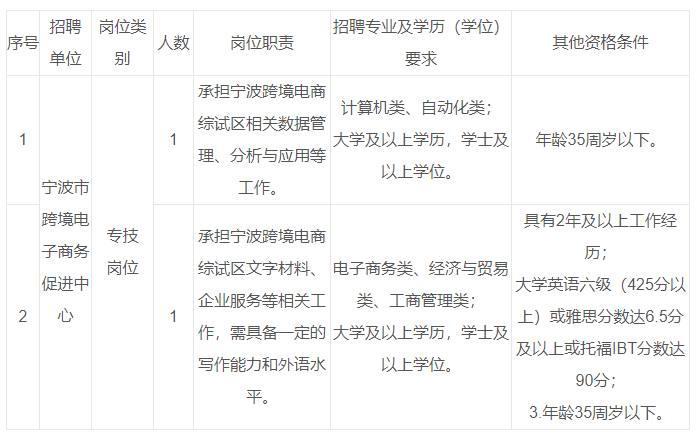 寧波市商務(wù)局所屬事業(yè)單位公開招聘工作人員公告