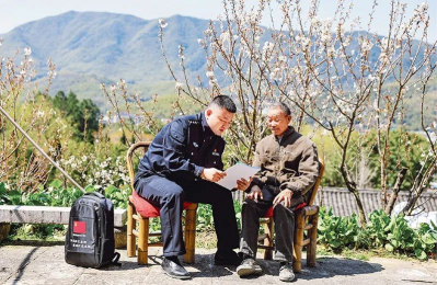 近年來,各地公安機(jī)關(guān)踐行新時(shí)代“楓橋經(jīng)驗(yàn)”,創(chuàng)新開展“背包警務(wù)”等工作模式,為基層群眾排憂解難,推動(dòng)矛盾糾紛化解。圖為2025年3月21日,浙江省余姚市公安局梁弄派出所民警通過“背包警務(wù)”進(jìn)村入戶,開展安全防范宣傳。新華社記者 江漢/攝