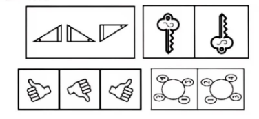 特點:各圖形的構(gòu)成完全相同,包括外形、數(shù)量等完全一致,考慮位置關(guān)系;位置關(guān)系有平移、旋轉(zhuǎn)、翻轉(zhuǎn)三個類型。