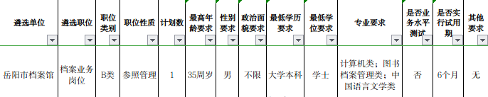 岳陽(yáng)市檔案館遴選1名工作人員