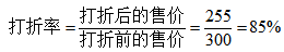 根據題干所給“售完全部桌椅后,實際利潤比期望利潤低了18%”,可得:6000+(y-200)×40=(300-200)×100×(1-18%),解得y=255。根據打折率的基本公式: