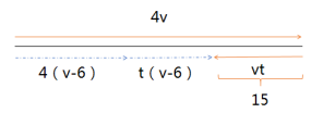 例2:甲乙二人上午8點同時從東村騎車到西村去,甲每小時比乙多騎6千米,中午12點甲到達(dá)西村后立即返回東村,在距西村15千米處遇到乙,東西兩村相距多遠(yuǎn)?