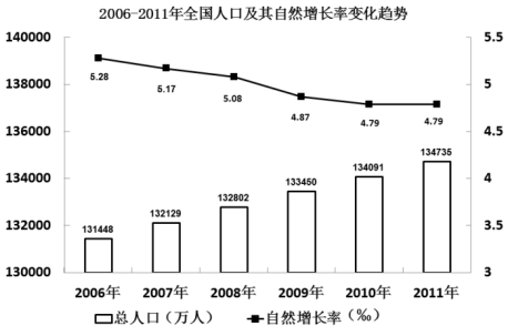 例3.與2006年相比,2011年我國的人口自然增長率下降了多少個百分點:( )