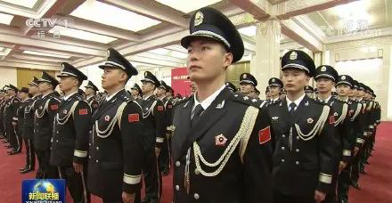 新式警禮服的第一次亮相,是在2020年8月26日。當(dāng)日在莊嚴(yán)肅穆的人民大會(huì)堂,習(xí)近平總書記向人民警察授旗,三百余名身姿挺拔的人民警察身著人民警察禮服——