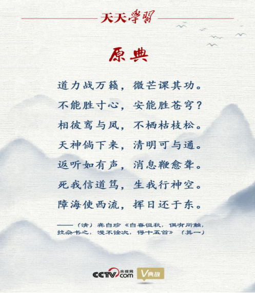 “不能勝寸心,安能勝蒼穹?”出自近代著名啟蒙思想家龔自珍 1827年所作一組古體詩的第一首,意思是人不能戰(zhàn)勝自己的方寸之心,又怎能戰(zhàn)勝廣闊無垠的外部世界?表達(dá)了詩人的振衰起弊之志和立志改革的抱負(fù)。