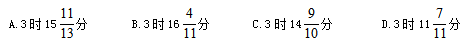 【答案】B。解析:從開始時刻,時針和分針成直角到后來的某一時刻時針和分針重合,相當(dāng)于整個過程分針比時針多走了90度,分針每分鐘走6°,時針每分鐘走0.5°,相當(dāng)于分針每分鐘比時針多走5.5°,要想多走90°,需要經(jīng)過90除以5.5即